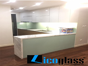 Kính ốp bếp màu xanh nhạt