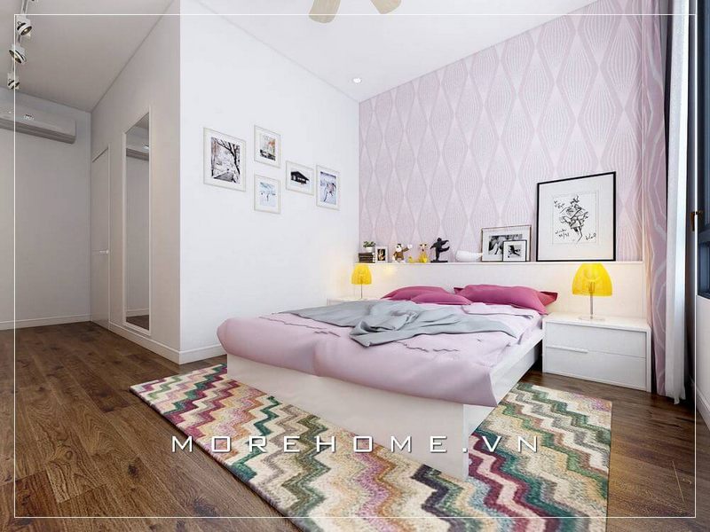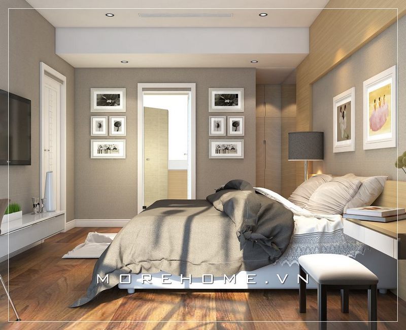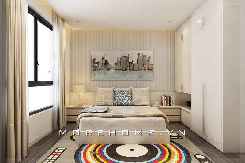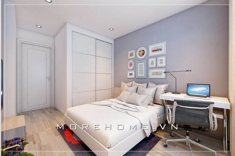 Trang trí nội thất phòng ngủ chung cư hiện đại ấn tượng với giường ngủ màu trắng tinh tế