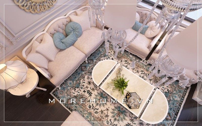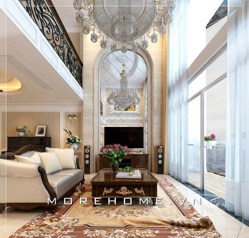 Phòng khách biệt thự có phong cách tân cổ điển đẹp và sang trọng, bạn nên không bỏ qua điều đó.
